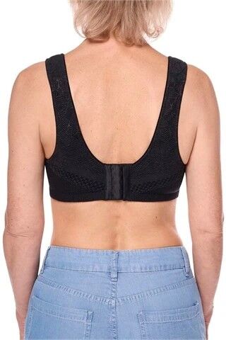 Bequeme, im Rücken verstellbare Träger halten und stützen die Prothese, ohne in die Schultern einzuschneiden. Einige Modelle haben breitere, gepolsterte Träger für zusätzlichen Komfort und Stütze. Die verstellbaren Träger werden mit den Größen breiter. Ein breiteres Unterbrustband bietet Unterstützung und Stabilität, um den sicheren Sitz der Prothese zu gewährleisten.