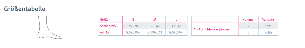 - Verlässlicher Halt durch anatomische Vorformung und umschließendes Stabilisierungselement am Sprunggelenk