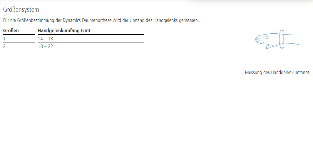 Der korrekte Sitz der Dynamics Daumenorthese ist notwendig, damit sie ihre volle Wirksamkeit entfalten kann.