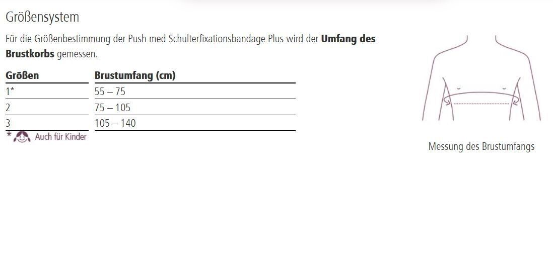 Die Push med Schulterfixationsbandage Plus ist für die Behandlung folgender Indikationen geeignet: