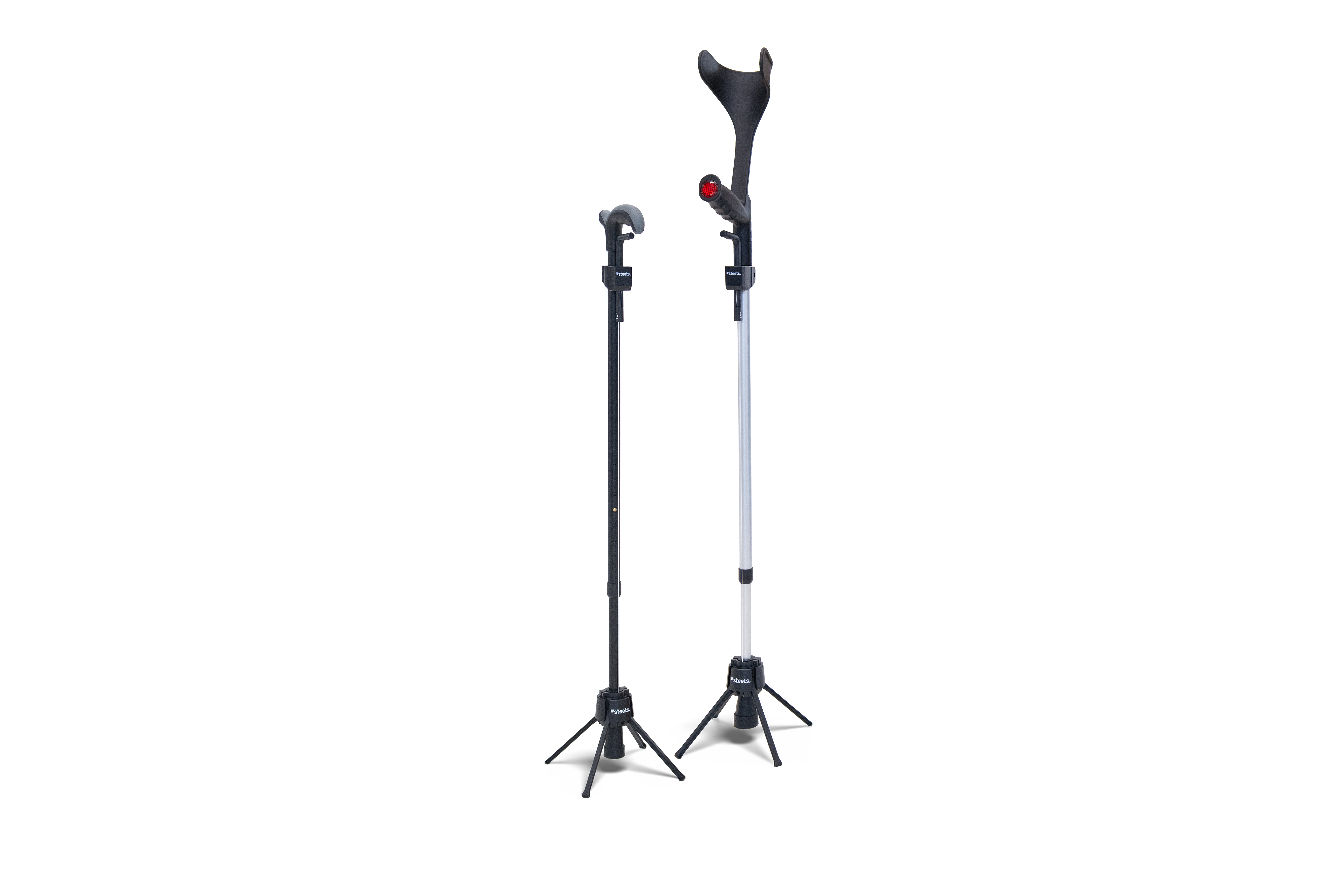 - Verhindert das Umfallen von Gehstützen – reduziert Stress und beugt Stürze vor